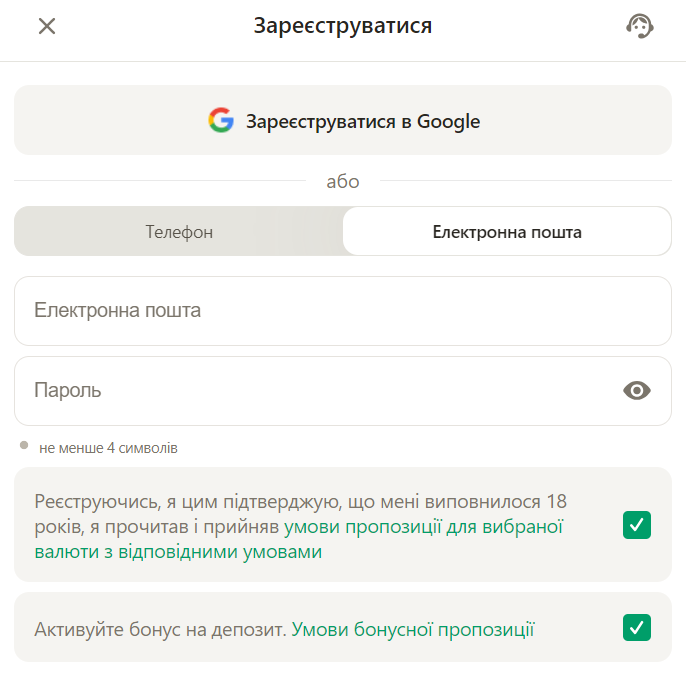 Для того, щоб поповнити рахунок, отримати вітальний бонус та почати грати на реальні кошти, необхідно створити акаунт, пройти авторизацію та ідентифікацію. Зупинимось на кожному з цих пунктів окремо.